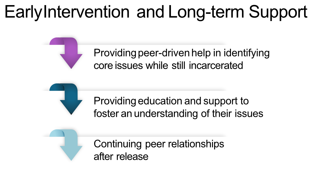 By beginning to address those issues while the person is still incarcerated, we can develop relationships that will continue after release. This long-term continuum of care facilitates successful reintegration back into the community and reduces homelessness and incarceration.